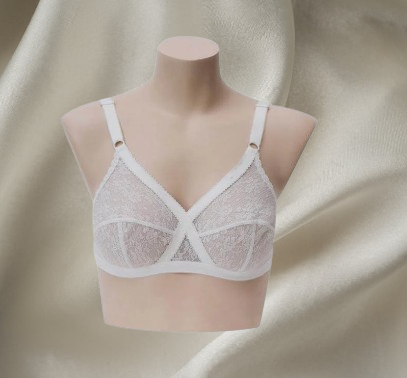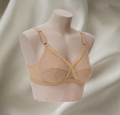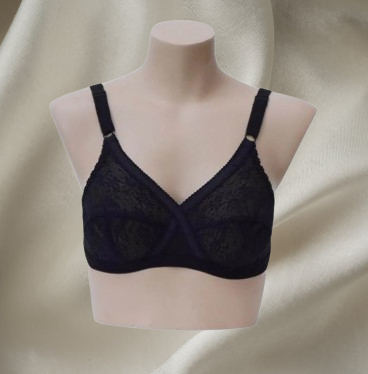 X-Over Bra β all-over lace with net lining, crossover support, broad adjustable straps, and non-padded full-coverage cups for comfort and confidence.